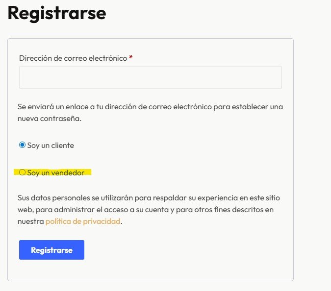 Haga clic en el botón "Registrarse" para continuar y configurar una cuenta en nuestra plataforma. Si es vendedor, debe elegir la opción "Soy un proveedor". Luego, siga todos los pasos del proceso de registro. Es un proceso de registro muy rápido.