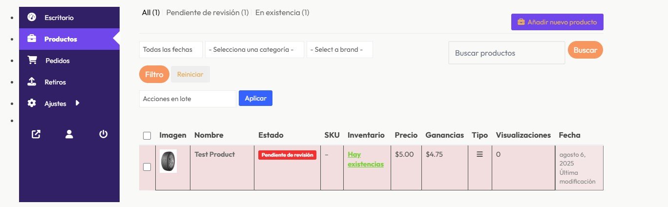 Si hace clic en el botón “Productos” en el menú, verá que el producto ahora está en estado “Pendiente de revisión”.