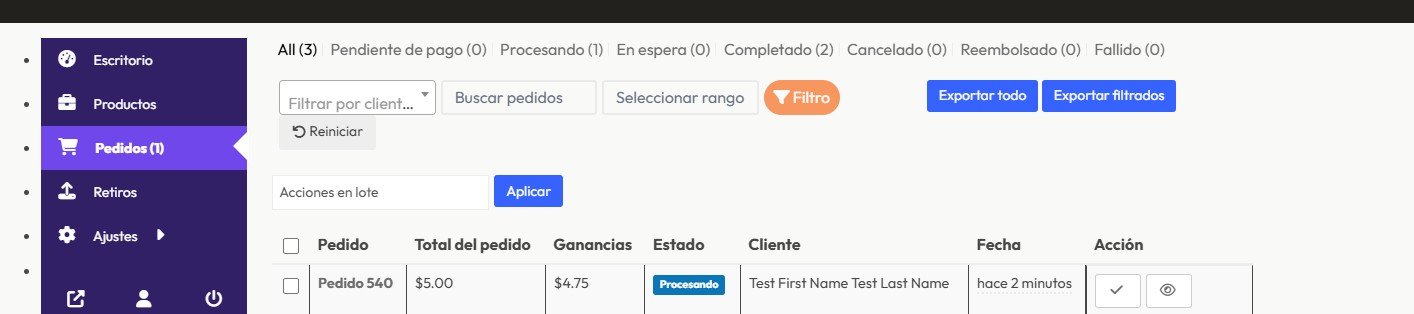 Si un cliente solicita su producto, verá aparecer un pedido en el menú “Pedidos” y estará en estado “Procesando”.