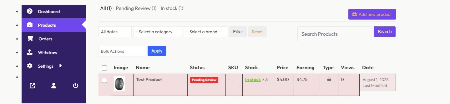 If you click on the “Products” button in the menu, you will see the product is now in a “Pending Review” State.